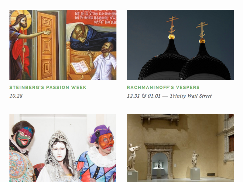 In redesigning the site, I wanted to increase the ratio of photos to text and make the events more prominent. The home page is almost completely stripped of text and almost every image links to ticket sales. Each event has its own page that can be archived after the season passes.